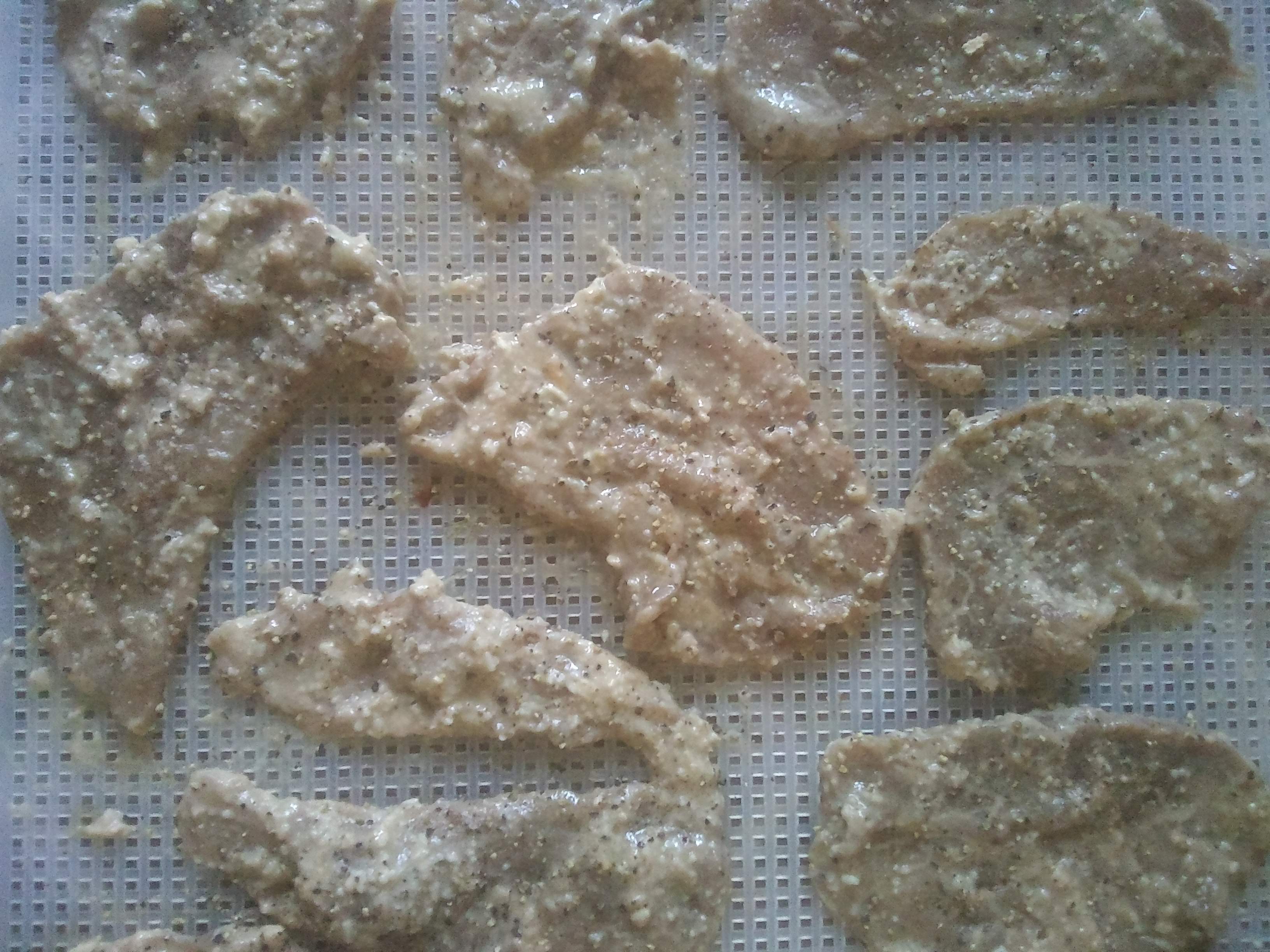 - Dehydrate at 135 degrees for 5-6 hours, or until dry yet leathery and pliable.