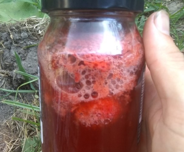Pack ripe, crushed berries into a mason jar maybe about 1/3 of the way. Top with water and tightly secure a screw lid. Leave the container out in the hot sun or counter for a day or two. Keep an eye out for a heavily bulging lid- that’s the sign we’re ready.