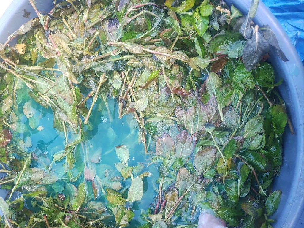 There are many different ways to process the harvested indigo from drying to composting, to using right away for fresh dyeing. The following process explains how to extract the pigment from the fresh leaves that can then be stored for later use. It is the preferred method for our farm as the first cutting usually comes in late July when time is more scarce and the harvest is the greatest.