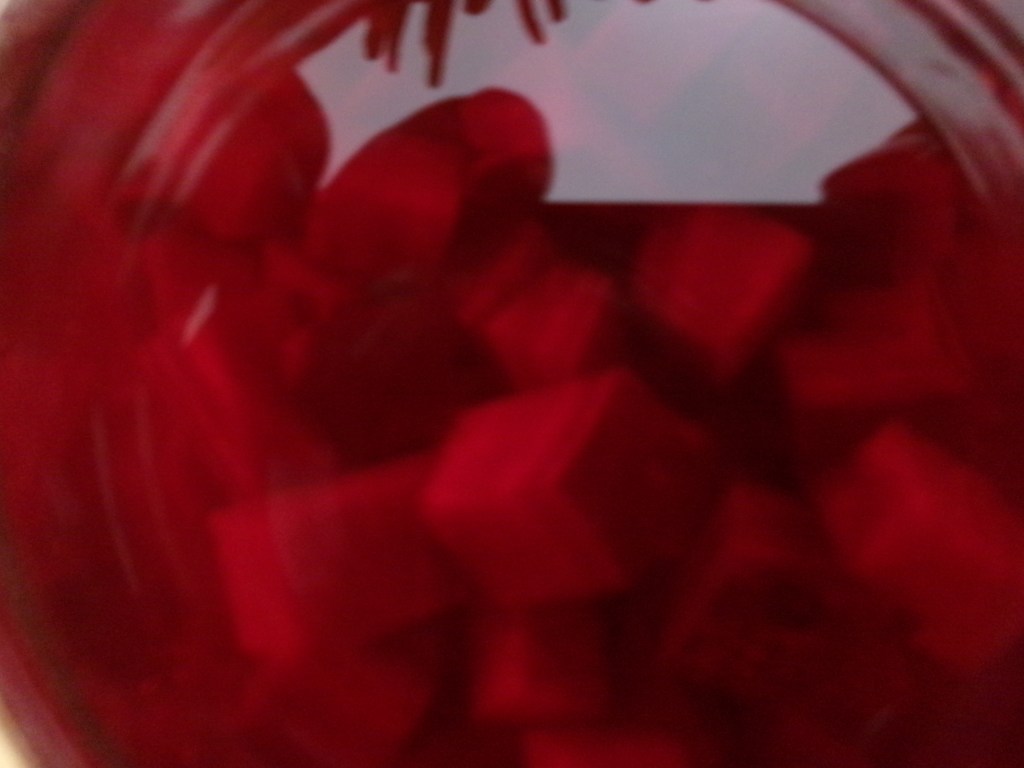 The process is as simple as cutting or grating beets and covering with water with a modest pinch of salt. Then let it ferment out at room temperature. After about three days or so hopefully the beets have given up a lot of their color and flavor and you have a dark scarlet brine. Give it a strain- being sure to cook up the lightly fermented solids. You can enjoy your beverage here, maybe with an ice cube or you can take it one step further.