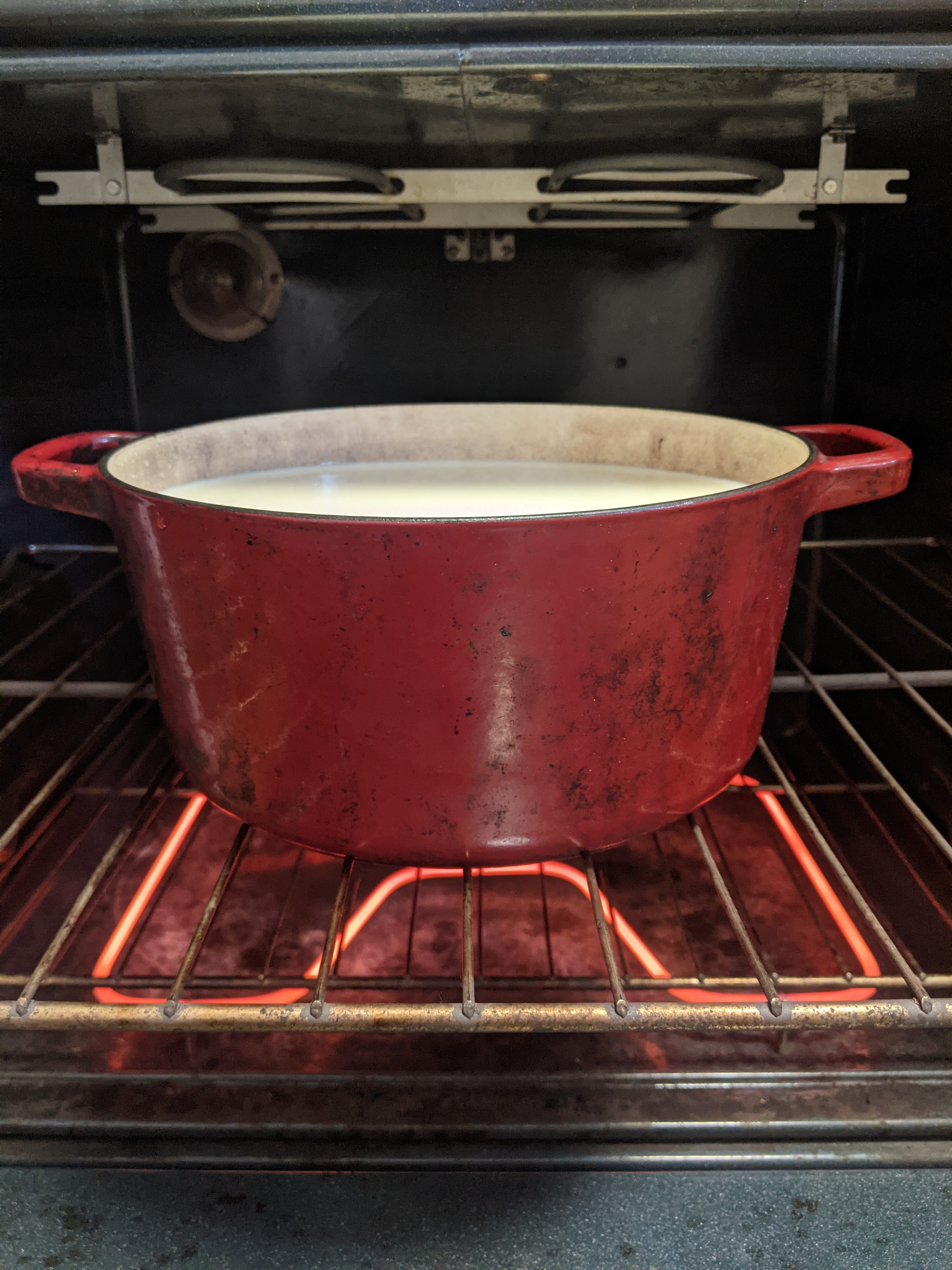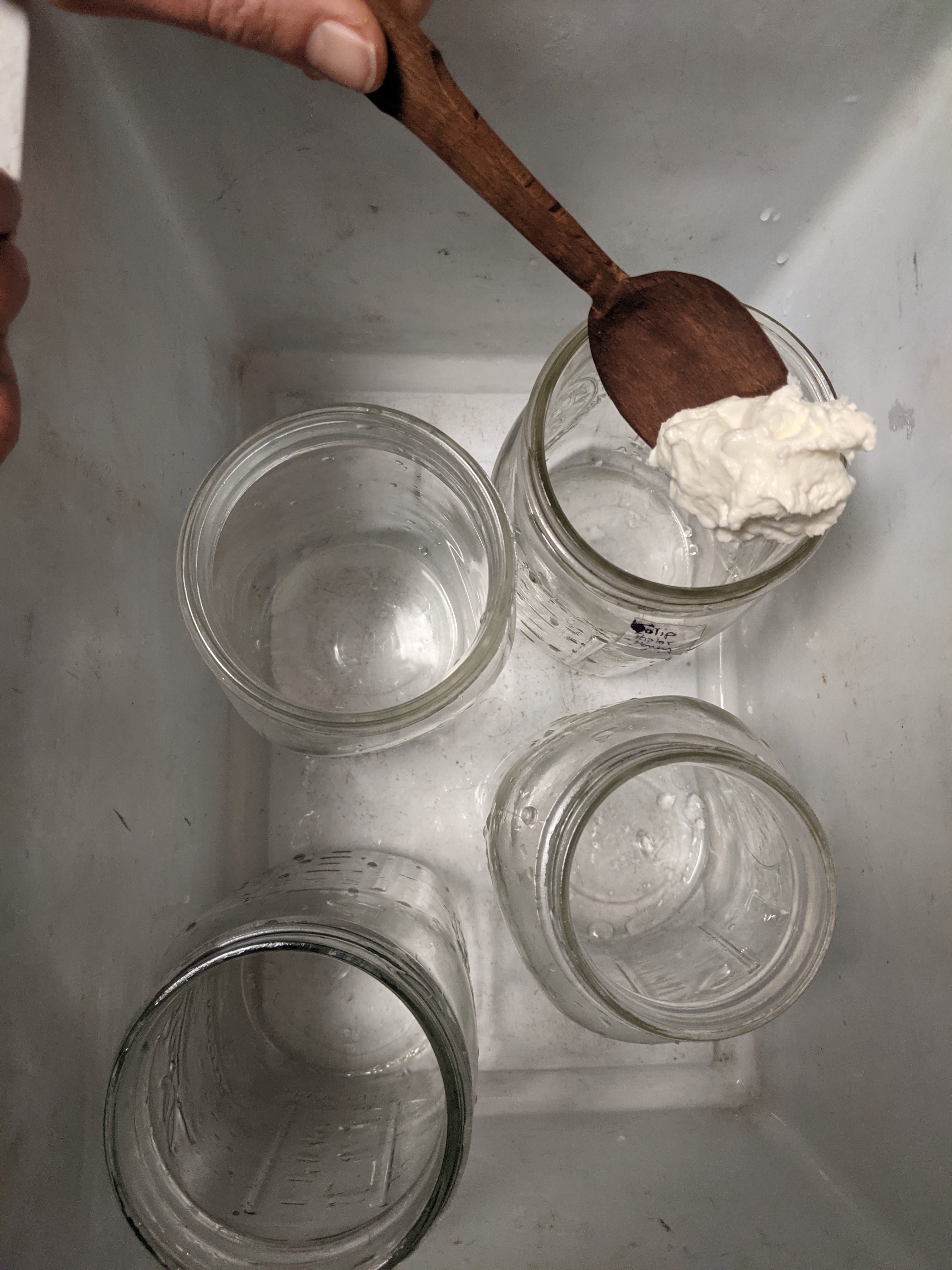 After time has aged our cream into maturity where it can easily be plucked away separately, on its own we’ll let it keep ripening to the autumn of its life, where it gradually begins its rotting, just ever so much. This extra period is the culturing process where lactic acid bacteria adds interesting flavors, changes the acidity ever so slightly which helps with the final butter’s storage potential, and breaks things down to essentially get the final buttering ball rolling.
