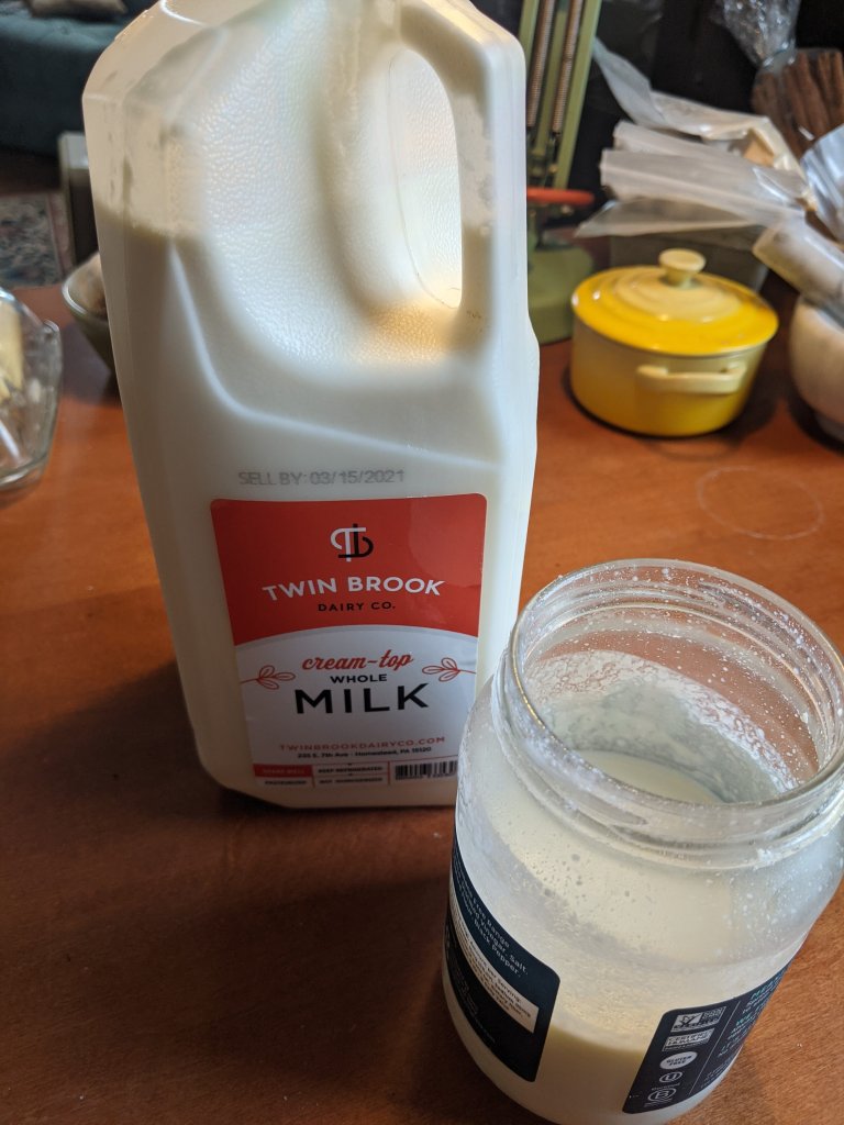 This culturing of cream can be matured for a couple hours or a couple days, relying on naturally occurring microbes or by adding your own through a kefir grain or backslopping a cultured product like yogurt, previous buttermilk or whathaveyou.