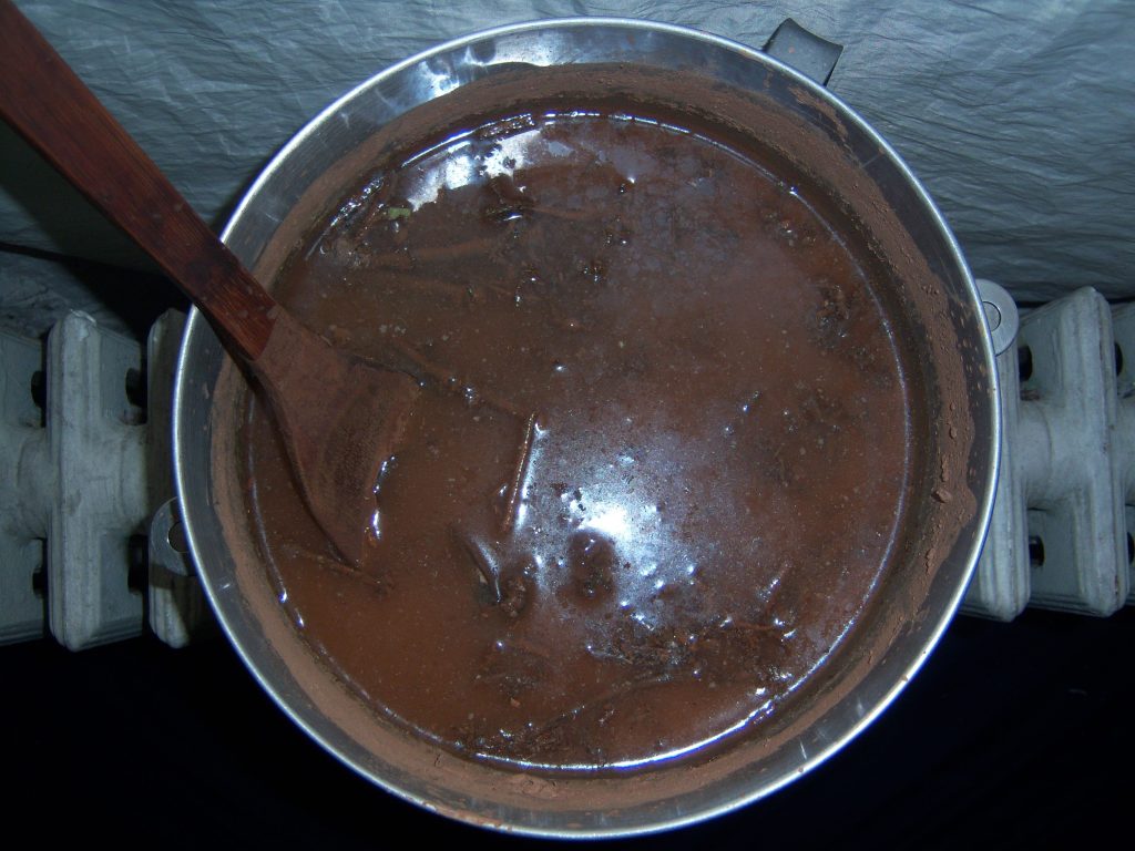 Stir and splash vigorously for as long as you can to introduce oxygen. Then let the mixture settle a couple hours or overnight. The top liquid should be clear of any blue with the pigment settled on the bottom. If there is still blue suspended in the water then go back to vigorous agitation and try again. If it still doesn’t separate try dropping a couple bags of ice in- this has worked for me in the past. When the pigment has precipitated, the top liquid, which will be yellow-hued should be poured off until all that remains is a blue sludge. The settled pigment goo can be dried down into a pigment powder or left as a paste. In this state it is usable to make paint or ink but needs an additional process to be able to adhere to fibers, specifically plant fibers.