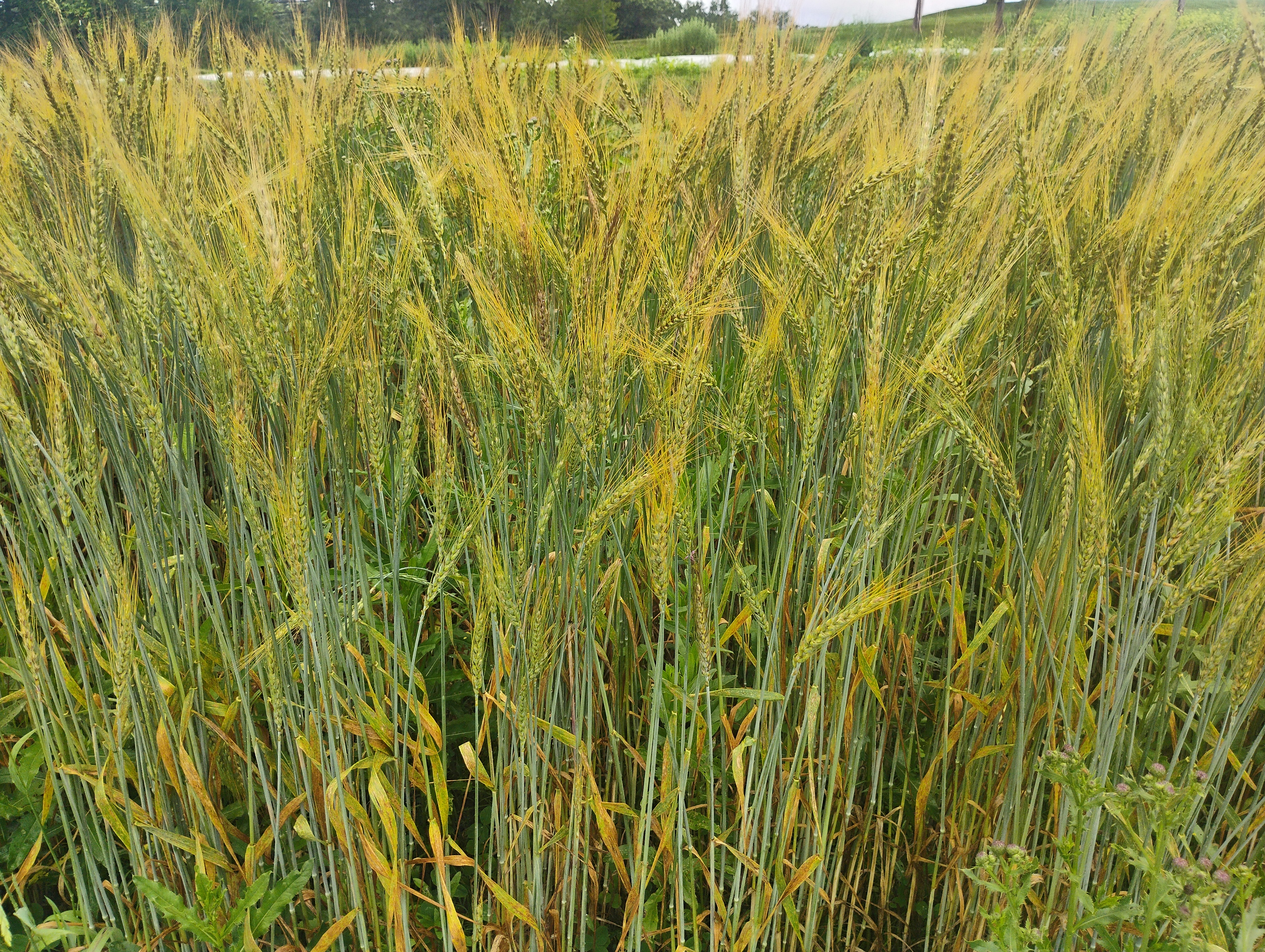 We have done a lot of growing with different wheats and their relatives at a small scale. At one time we were growing close to 20 different kinds but have paired that down for sanity’s sake. The primary wheat we grow is halychanka, which is faculative, so can be grown as a winter or spring grain. We also continue with a free threshing einkorn called Bleu Adur. Wheats that will get back into the rotation ever couple of year include- Black Emmer, Macha (very high protein wheat), and Cevena (purple wheat). Typically we do winter plantings because spring weather makes for too many added stresses. The harvest reliably falls around July 4th, where the heads are cut off and collected and the straw is mowed and left in place. The heads are dried to be threshed later when there is more time. Typically with large amounts the threshing is done with a leaf shredder, and then winnowed, and stored.