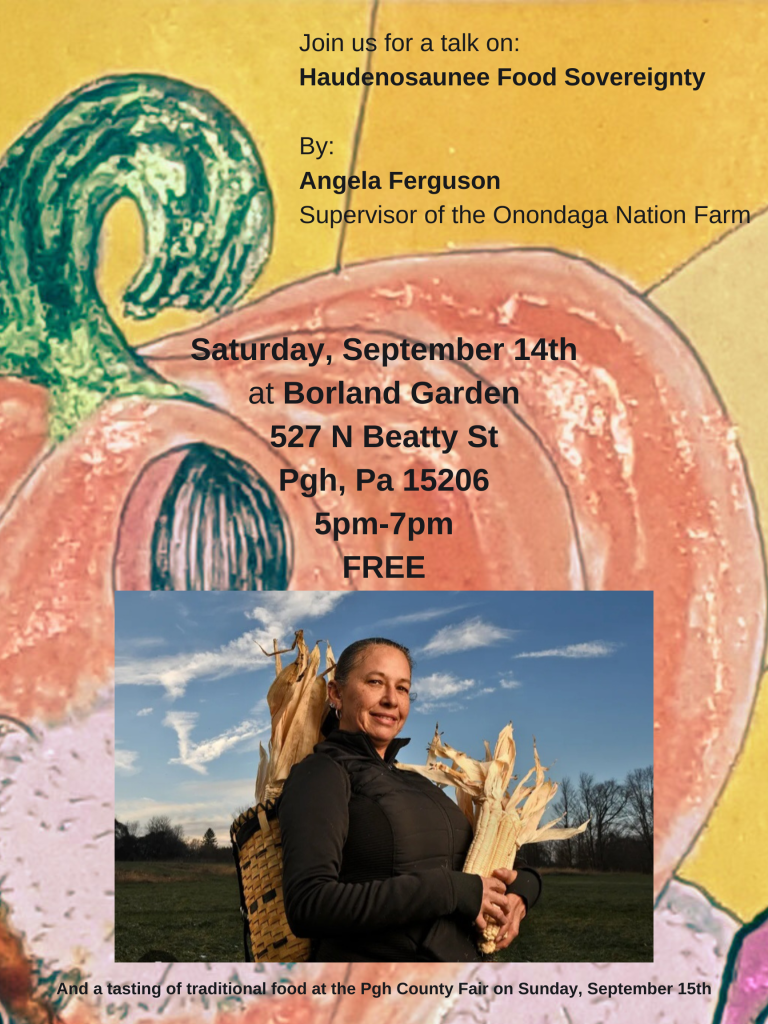Speaker bio: Angela Ferguson, Onondaga Eel Clan, grew up on the Tuscarora Nation territories in western New York, where she learned about the care and prepareation of traditional foods. A dedicated grower, today Angela is the Supervisor of the Onondaga Nation Farm. The farm practices all aspects of Food Sovereignity for their community. Her many passions include Haudenosaunee Traditional Agriculture, Seed Caring, Bee Keeping, Foraging, Traditional Cooking Methods, Maple Tapping, Haudenosaunee Nutrition Education, Knowledge Sharing, Youth Mentorship, & Traditional Hide Tanning.