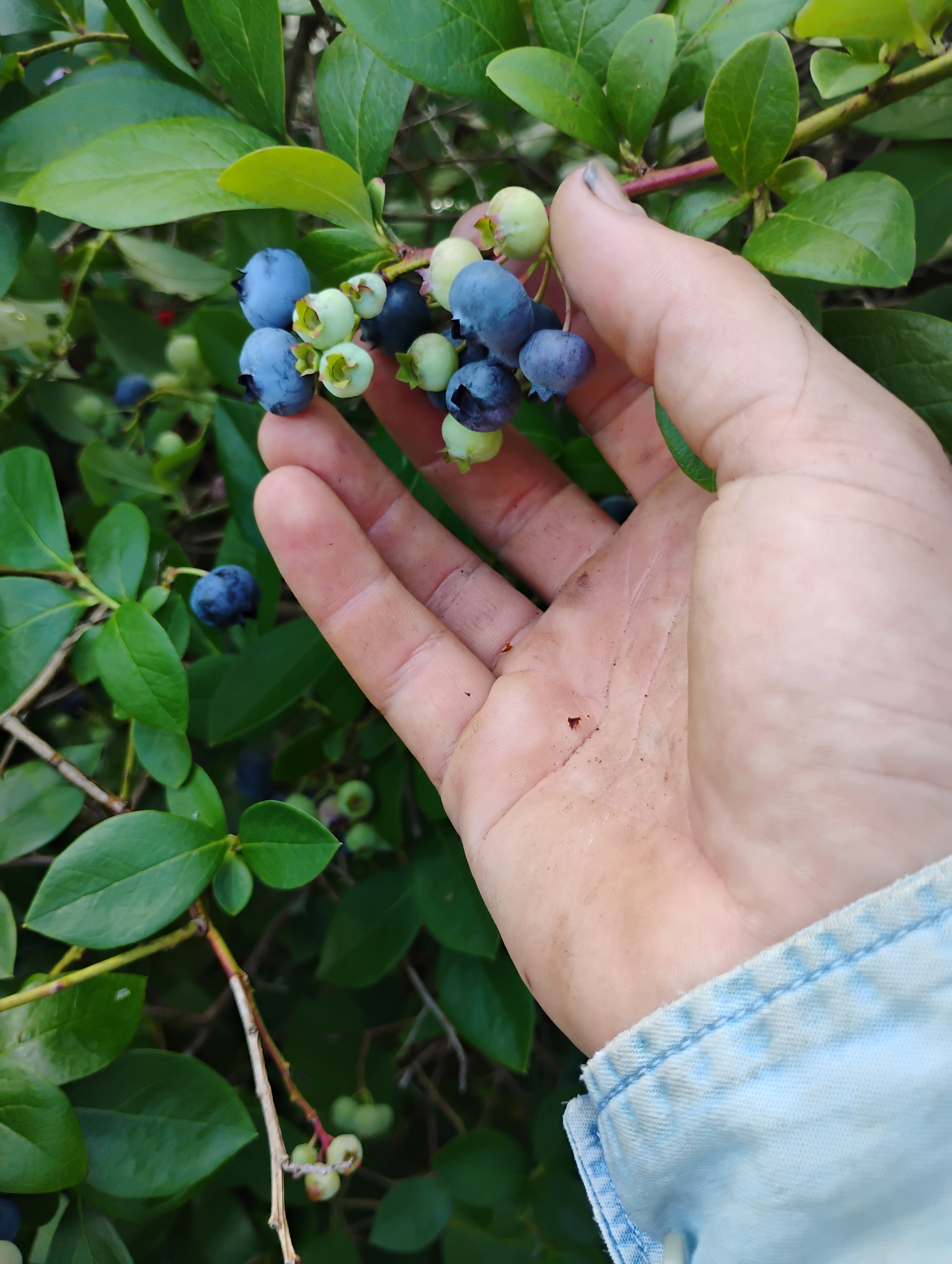 We grow two varieties to ensure better pollination- Jersey and Bluecrop. For the first couple of years we gradually lower the soil pH towards the ideal 4.5 and add organic matter as we can because its said that blueberries can tolerate improper pH with enough organic matter. Our blueberries come around early July and we are working on getting a crop of Elliot blueberries to help us string together the late season lull that markets experience in late September.