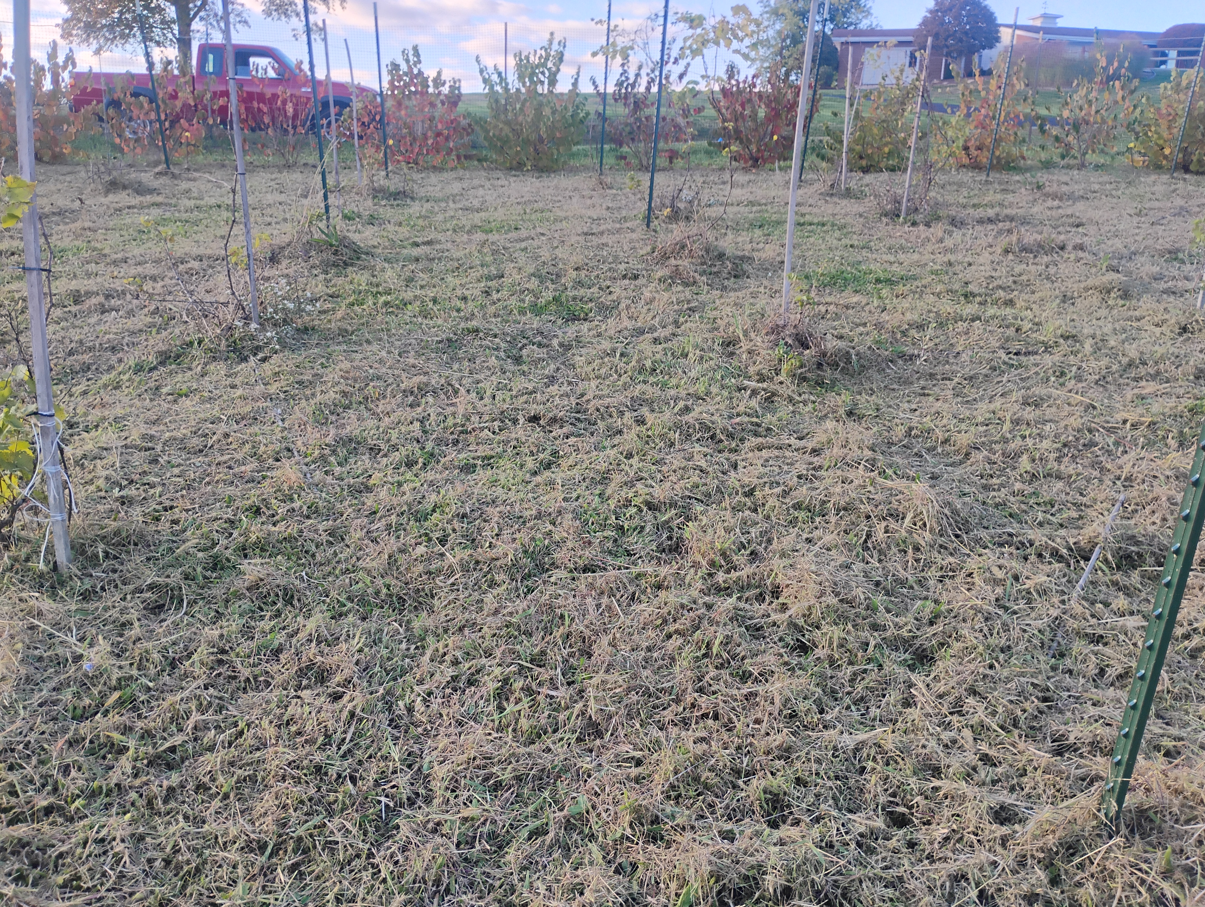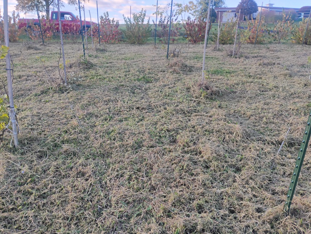 We have 1/8 acre section dedicated as a vineyard. There are two rows of 8 plants of Somerset Seedless, a blush eating grape, and 7 rows of Marquette, a hold hardy University of Minnesota red wine grape. We also had 7 rows of Saperavi grape, a deep red Georgian wine grape, and during the winter of 2024-5 all of those grapes were killed off by that year’s harsh winter. We are currently gradually working the marquette to replace the space through rooted cuttings since we know they can handle the weather well.